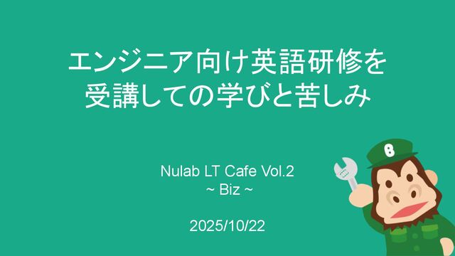 エンジニア向け英語研修を 受講しての学びと苦しみ Nulab LT Cafe Vol.2 ~ Biz ~ 2025/10/22