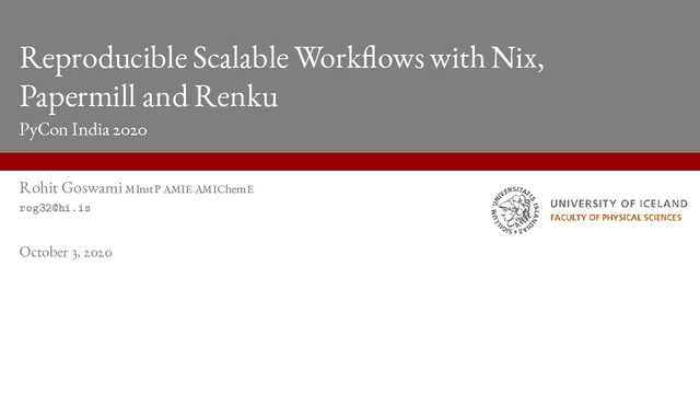 the Future Rohit Goswami MInstP AMIE AMIChemE Reproducible Scalable Workflows with Nix, Papermill and Renku October 3, 2020 2 50