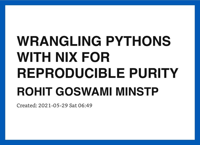 n.d. “Nix: A Safe and Policy-Free System for Software Deployment,” 15. Dolstra, Eelco, Andres Löh, and Nicolas Pierron. n.d. “NixOS: A Purely Functional Linux Distribution” 20 (5-6):577–615. Goswami, Rohit, Amrita Goswami, and Jayant K. Singh. n.d. “D- SEAMS: Deferred Structural Elucidation Analysis for Molecular Simulations” 60 (4):2169–77. 12 . 1