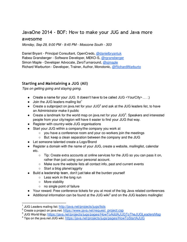 1. JavaOne 2014 - BOF: How to make your JUG and