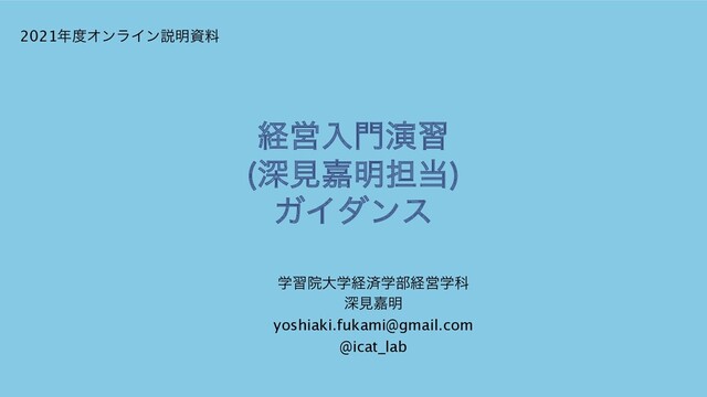 2021年度学習院大学 経営入門演習 (基礎ゼミ) 深見担当のガイダンス資料/AY2021_b...