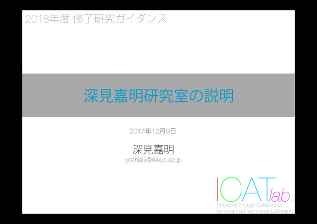 Innovation through Collaboration by Advanced Technology Laboratory ICAT lab. ਂݟՅ໌ݚڀࣨͷઆ໌