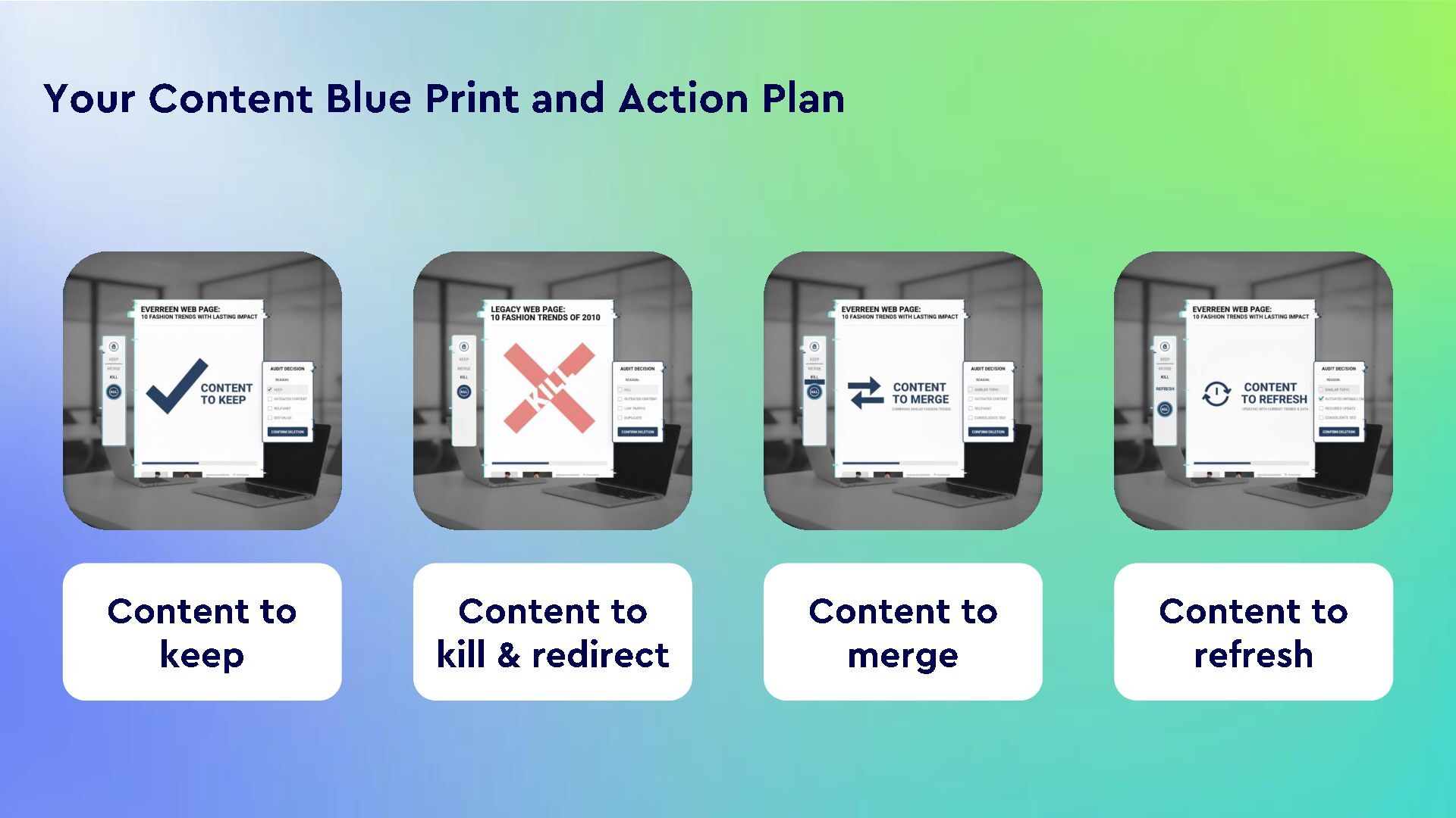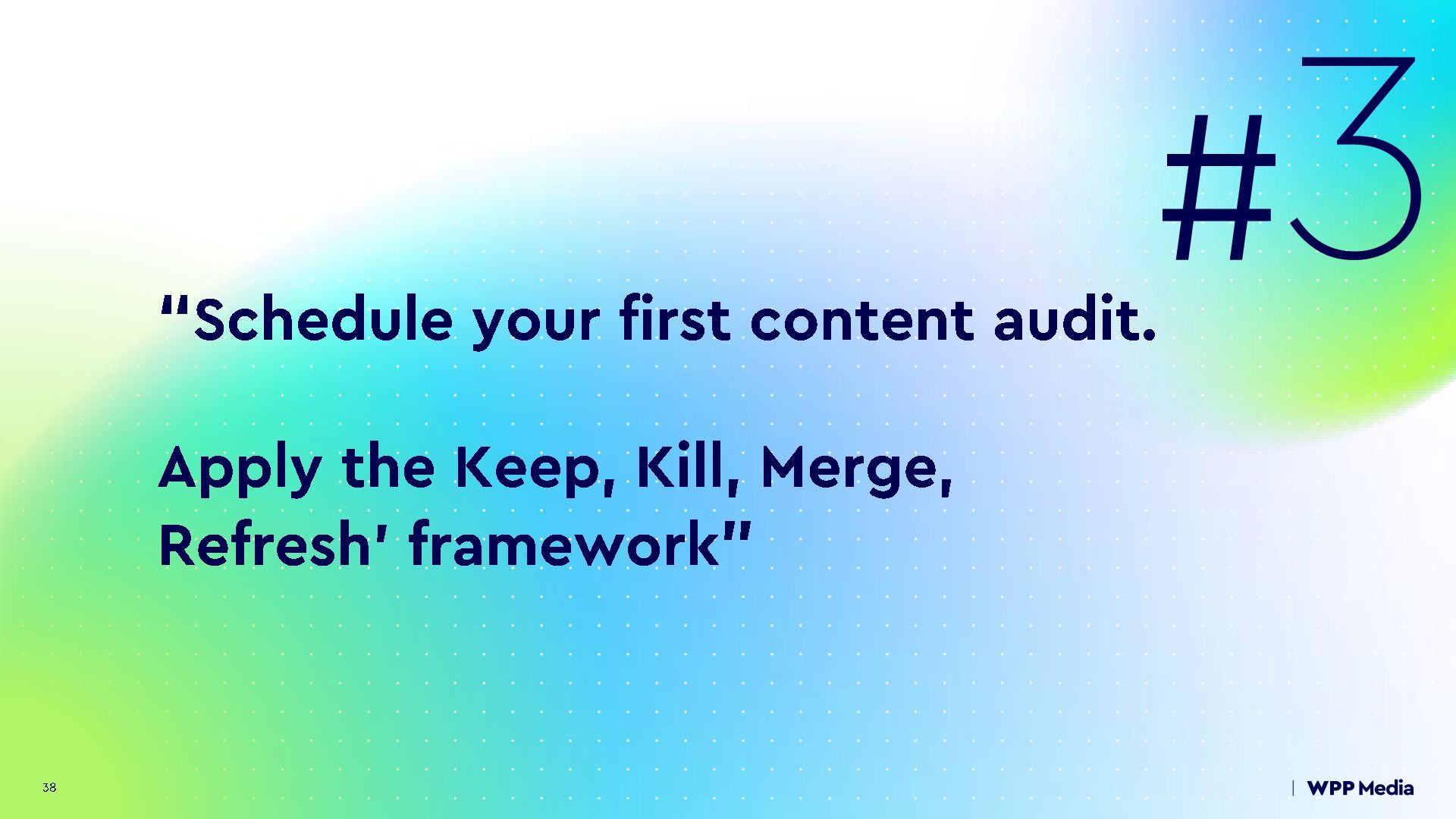 Regularly schedule content audits and apply the "Keep, Kill, Merge, Refresh" framework.