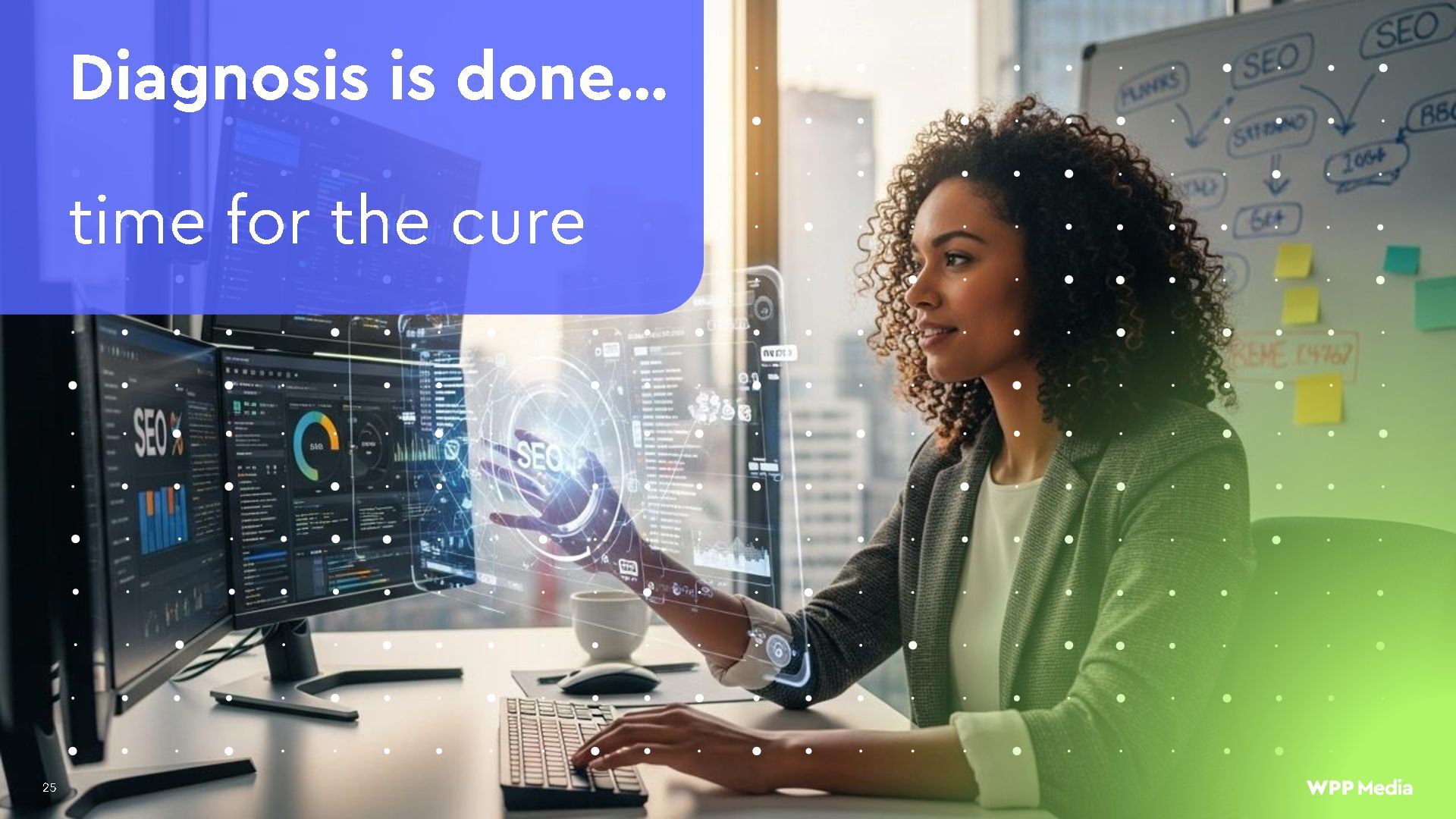 The core solution proposed is a proactive "Keep, Kill, Merge, Refresh" framework. This involves a comprehensive diagnosis using data from website crawls, performance analytics, link data, and Google Index to identify decaying content. Content is then mapped by type, user intent, and topic to inform strategic actions.