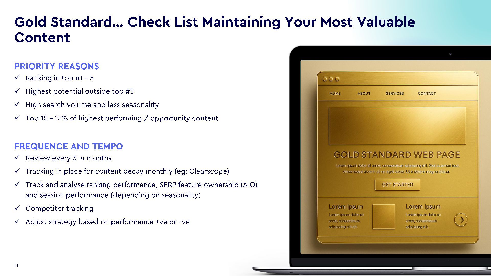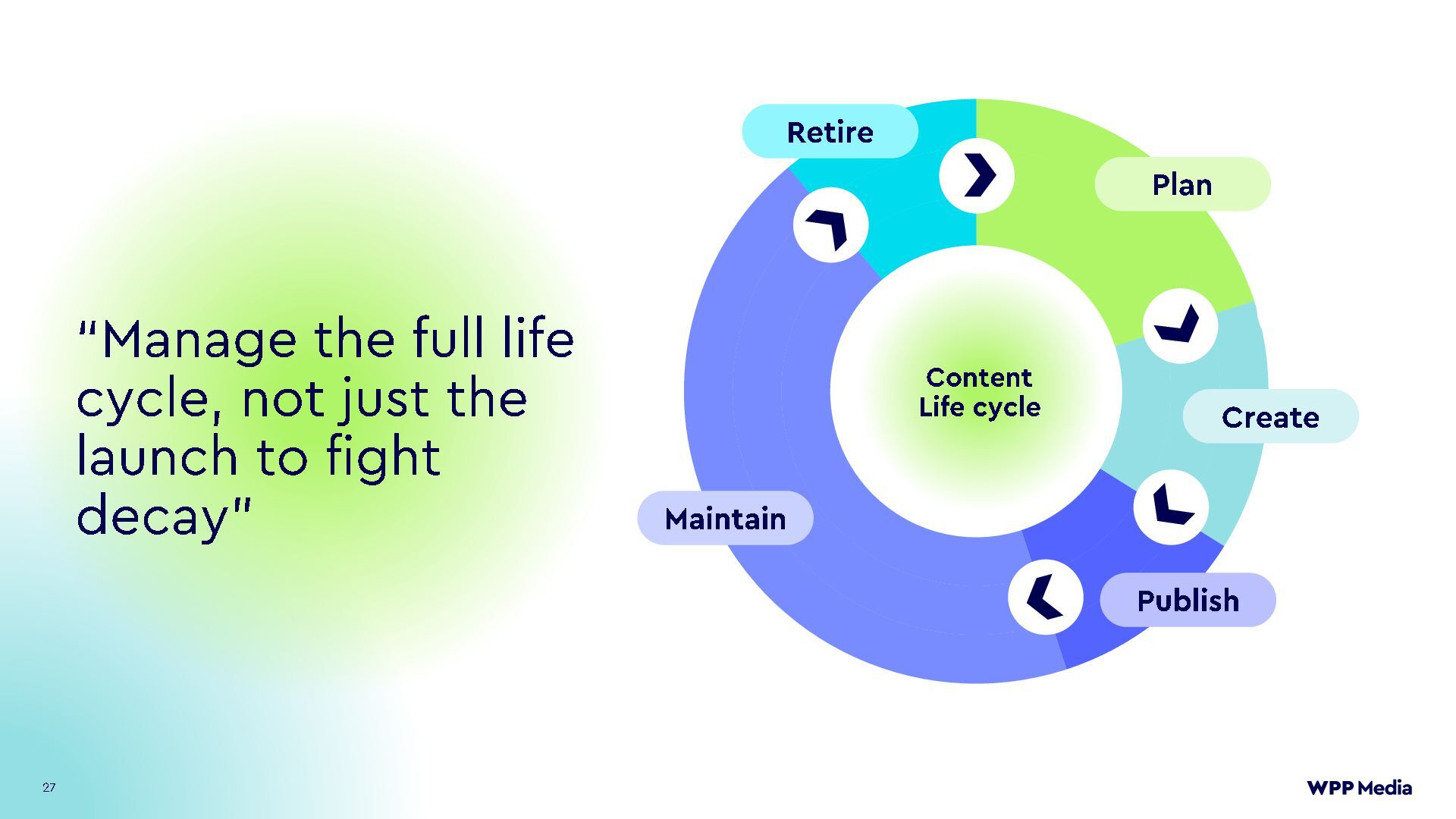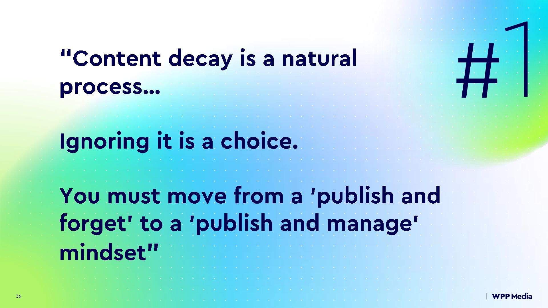 Embrace a "publish and manage" mindset, recognizing content decay as a natural process.