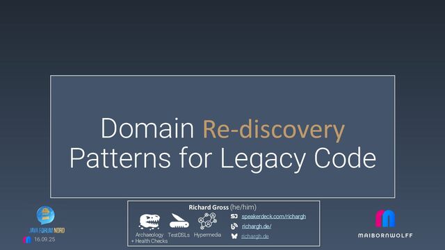 In this talk we'll explore the core patterns to rediscover the domain. These patterns go beyond merely deciphering the code's functionality. They provide strategies to comprehend the underlying concepts, behaviors, and relationships in the domain.