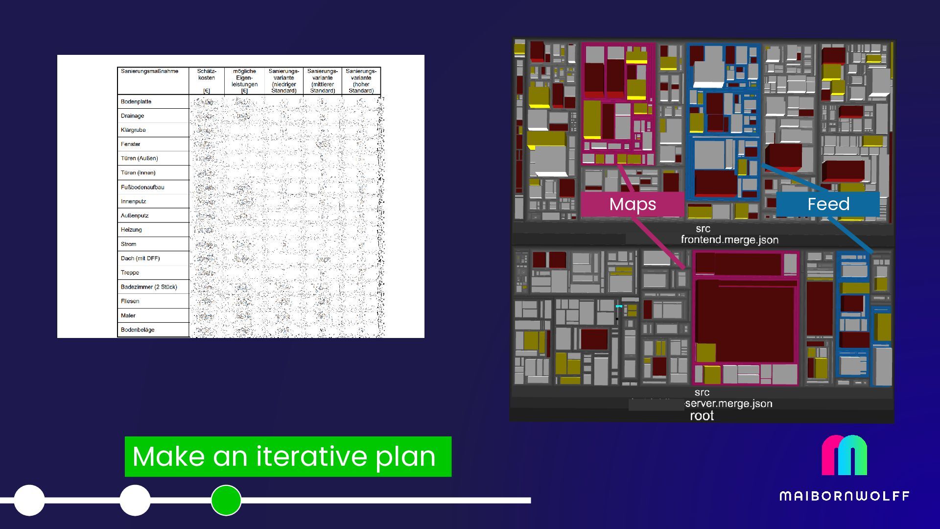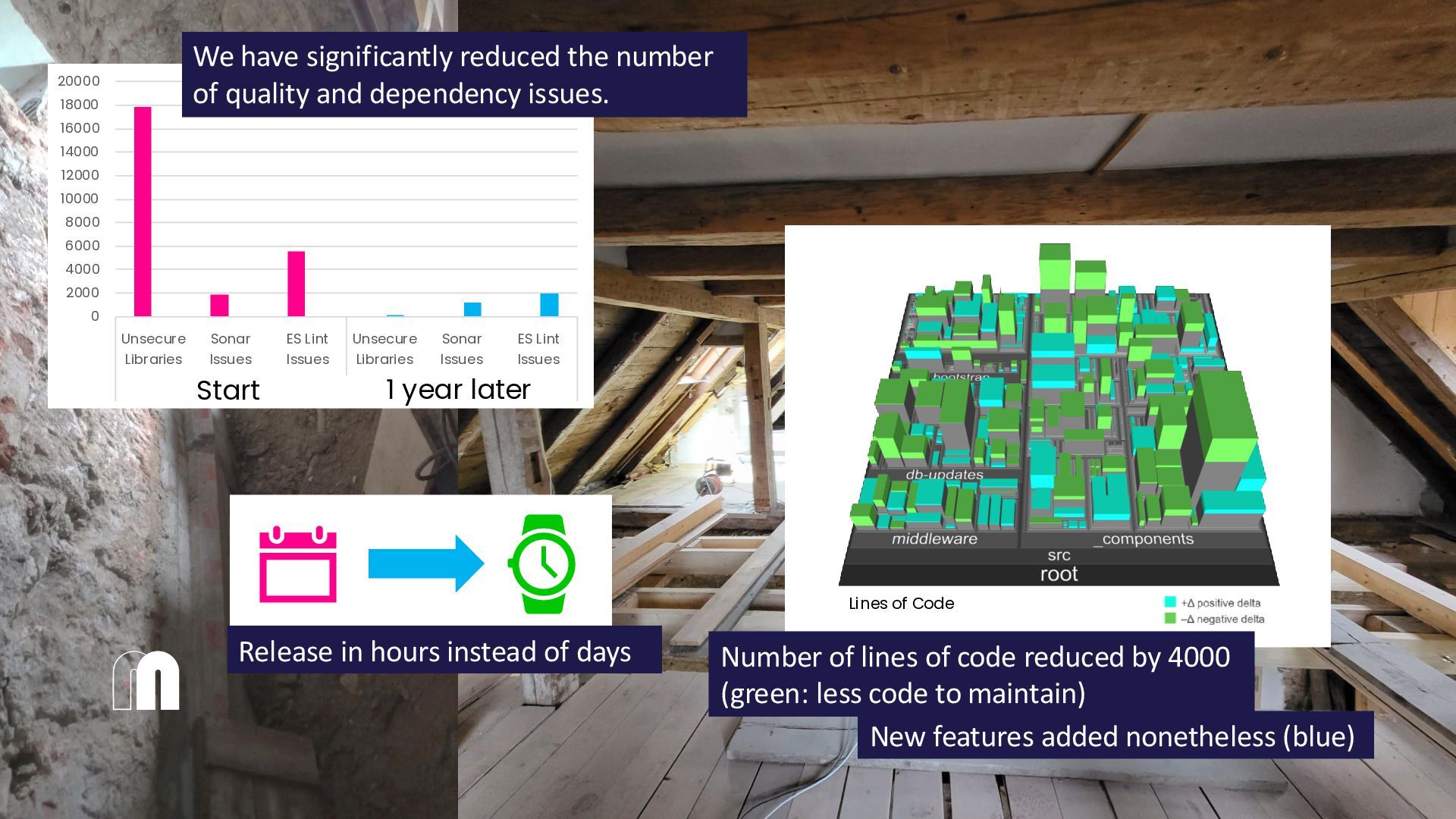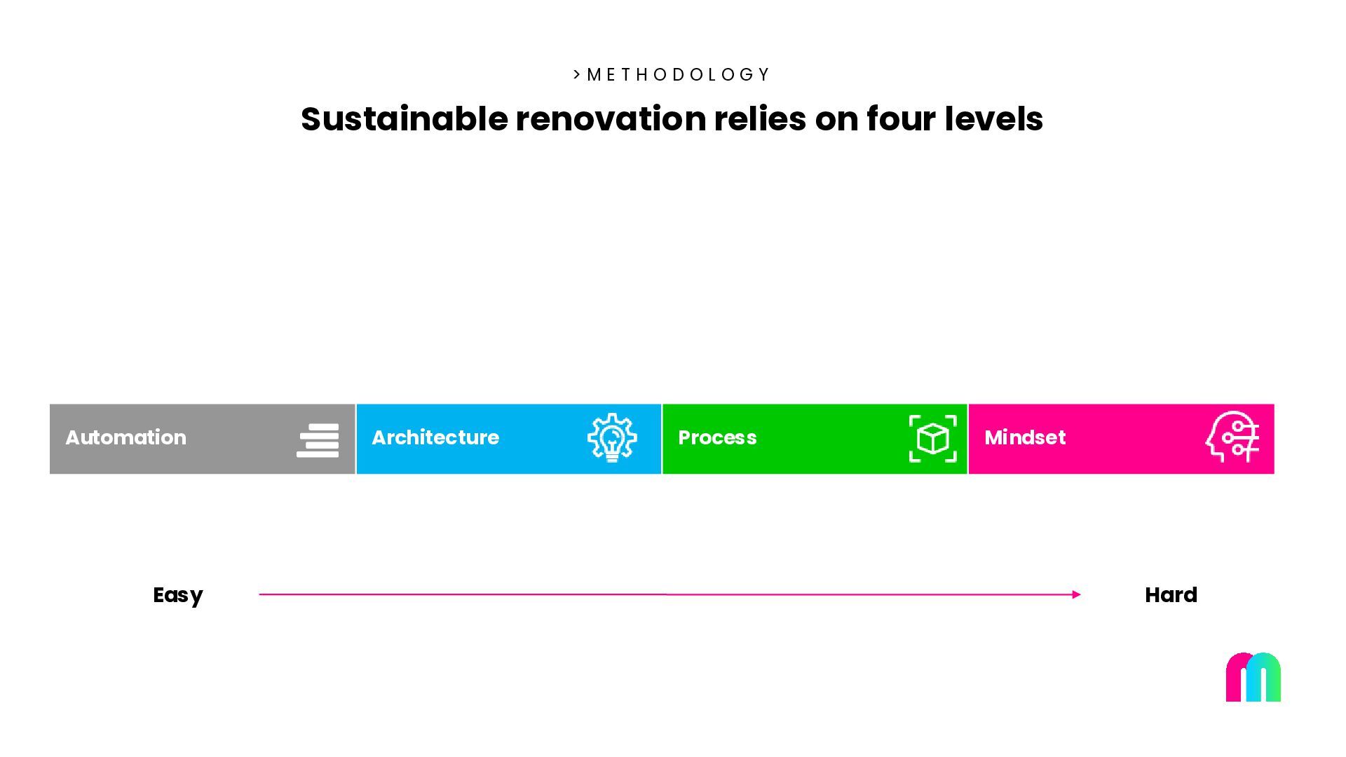In this experience report I'll show lots of pictures from our house renovation - full of torn down walls, replaced floors and the like - and draw analogies to our legacy code renovation. I'll share helpful tips for code renovation that can be understood by anyone due to the building analogies and hopefully entertain you along the way. By the end I hope to have convinced you that renovating a legacy code base is a much nicer task than renovating a house, where each torn down wall can lead to brick and mortar raining down on your malleable head.