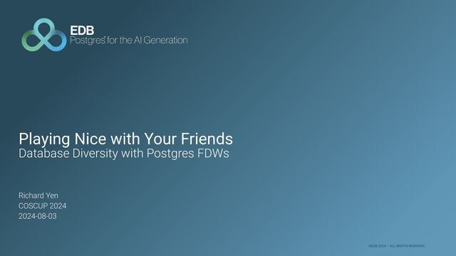You want to use Postgres. Your data lives outside of Postgres, and you're not ready to migrate it. Or, you want to leverage performance features of other databases like Redis, so you can't migrate it to Postgres just yet. In either case, you can still use Postgres! Foreign Data Wrappers (FDWs) give you the ability to query external data from within Postgres, just as if it were a regular Postgres table. This talk will discuss all about FDWs and how you can leverage this feature for performance and stability.