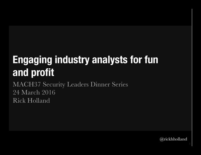 1 Engaging industry analysts for fun and profit MACH37 Security