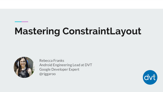 In this talk, Rebecca will demonstrate how to use ConstraintLayout when building Android Apps and some cool tricks you can do with it. From simplifying complex layouts to creating animations, ConstraintLayout has some really great usages.