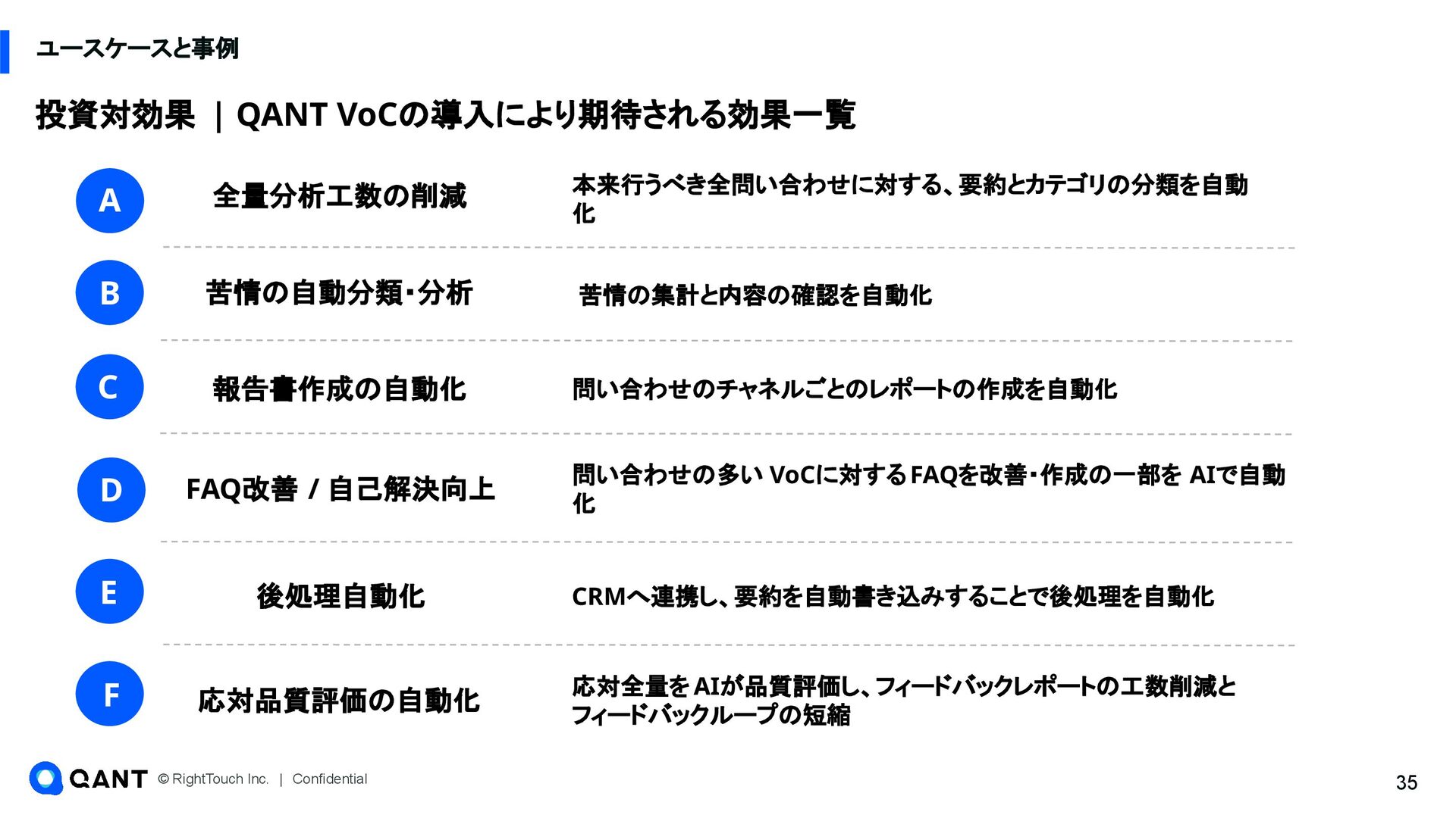 投資対効果 | QANT VoCの導入により期待される効果一覧