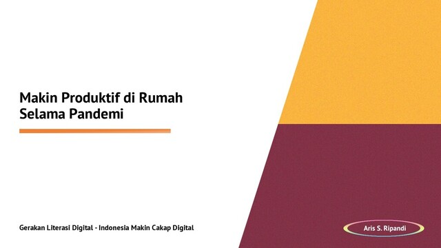 Materi Indonesia Makin Cakap Digital. Kiat-kiat hal yang dapat dilakukan selama pandemi, ayo makin produktif dirumah.