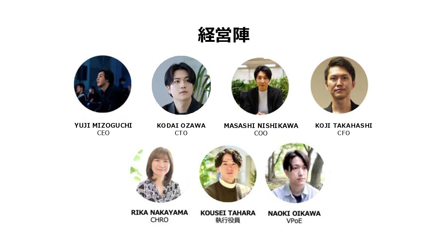 KOJI TAKAHASHI CFO NAOKI OIKAWA VPoE KOUSEI TAHARA 執行役員 RIKA NAKAYAMA CHRO