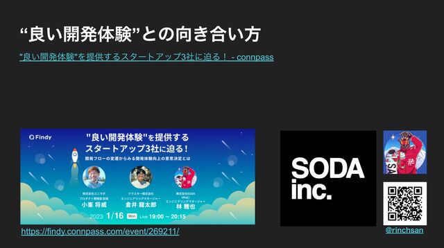 「"良い開発体験"を提供するスタートアップ3社に迫る! ~開発フローの変遷からみる開発体験向上の意思決定とは~」 https://findy.connpass.com/event/269211/