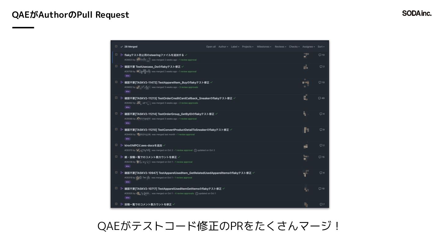 QAEがAuthorのPull Request QAEがテストコード修正のPRをたくさんマージ!