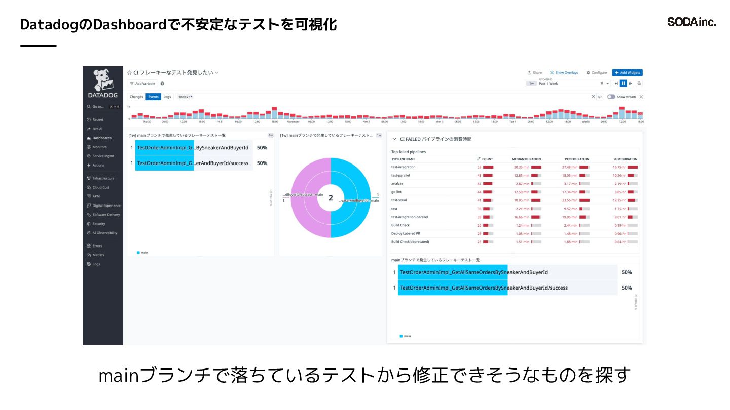 DatadogのDashboardで不安定なテストを可視化 mainブランチで落ちているテストから修正できそうなものを探す