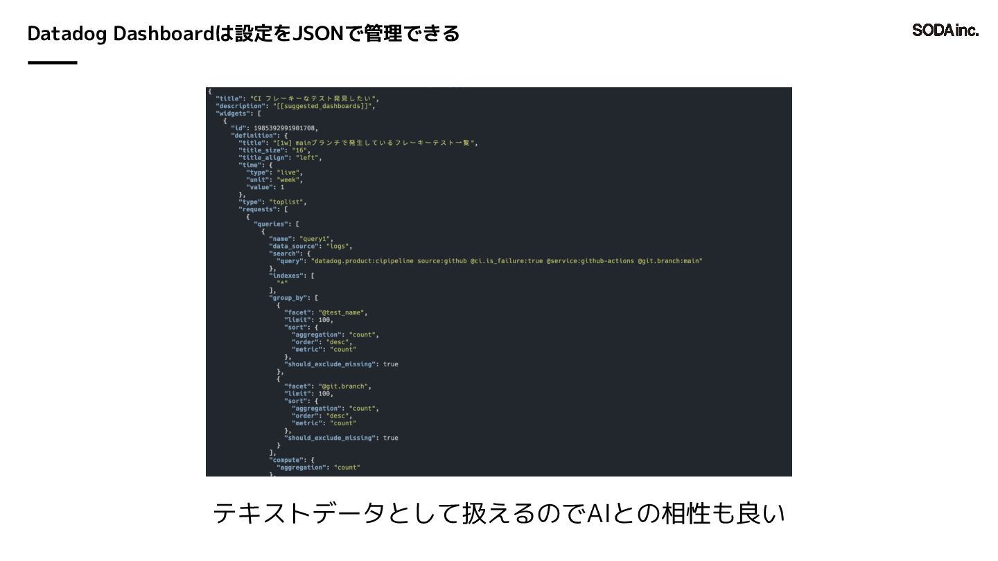 Datadog Dashboardは設定をJSONで管理できる テキストデータとして扱えるのでAIとの相性も良い