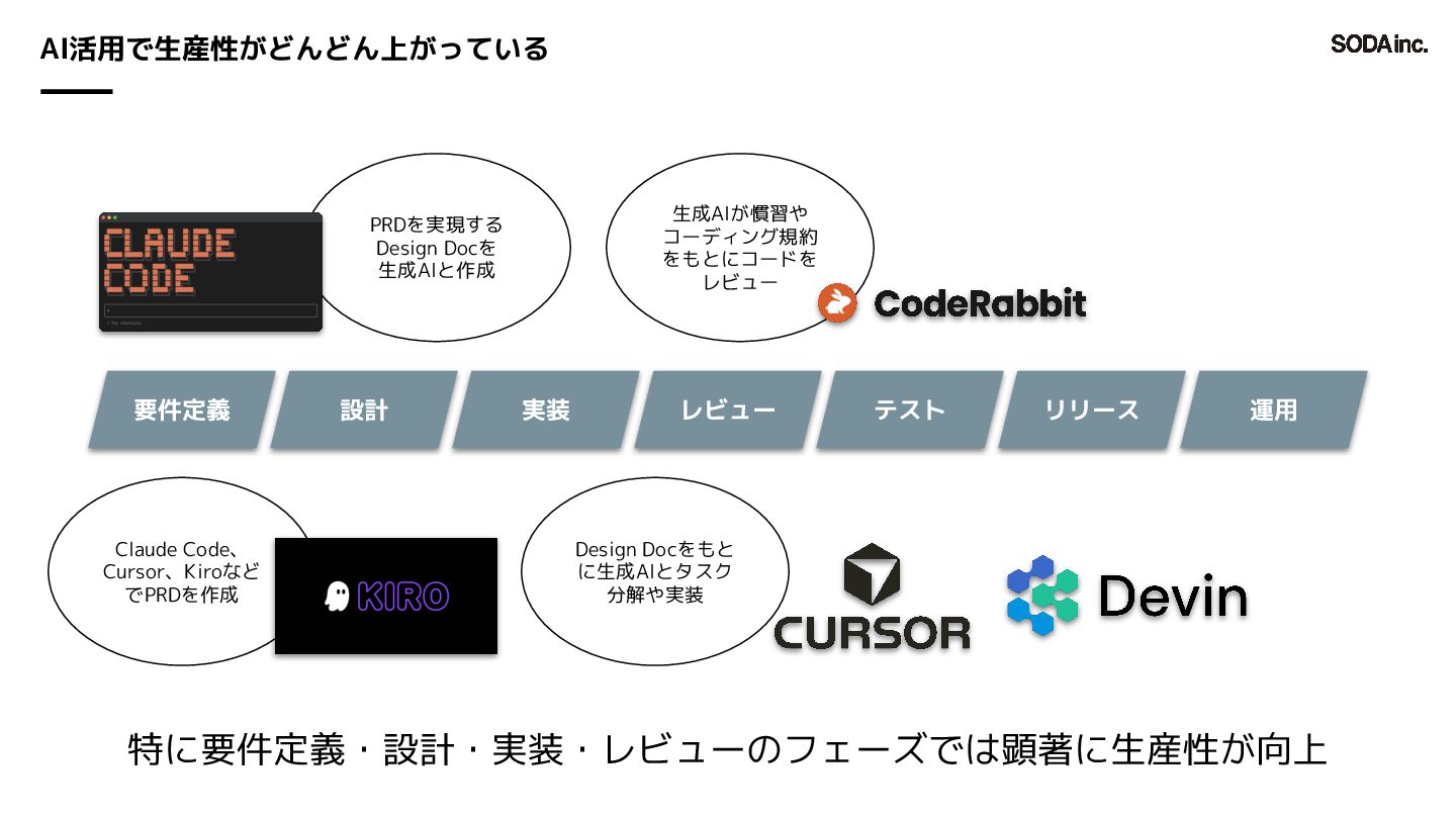 AI活用で生産性がどんどん上がっている Claude Code、 Cursor、Kiroなど でPRDを作成 要件定義 設計 実装 レビュー テスト