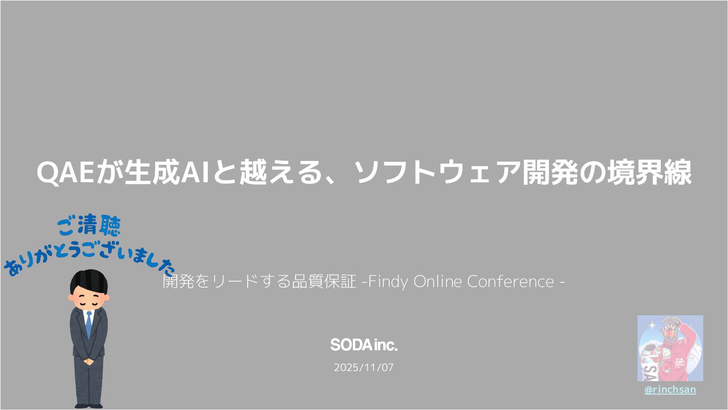 2025/11/07 開発をリードする品質保証 -Findy Online Conference - QAEが生成AIと越える、ソフトウェア開発の境界線 @rinchsan