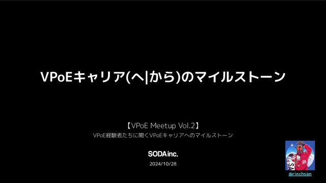 2024/10/28 【VPoE Meetup Vol.2】 VPoE経験者たちに聞くVPoEキャリアへのマイルストーン VPoEキャリア(へ|から)のマイルストーン @rinchsan