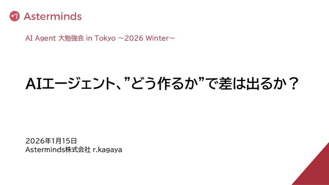 2026年1月15日 Asterminds株式会社 r.kagaya AI Agent 大勉強会 in Tokyo 〜2026 Winter〜
