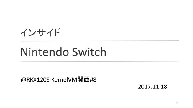 ◦ 氏が 週間前に成功 技術的な詳細は不明 ◦ デバッグ用のシステムコール発掘に成功し、デバッガの開発まで行っている • 任天堂の公式情報によると、 の を利用している ◦ 暗号化や署名検証等の な処理は で実行されている可能 性