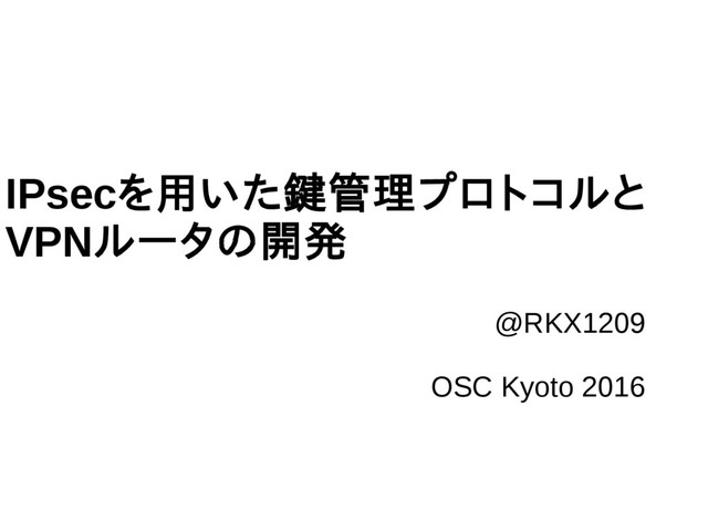 IPsecを用いた鍵管理プロトコルと VPNルータの開発 @RKX1209 OSC Kyoto 2016