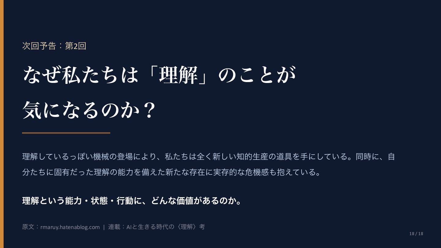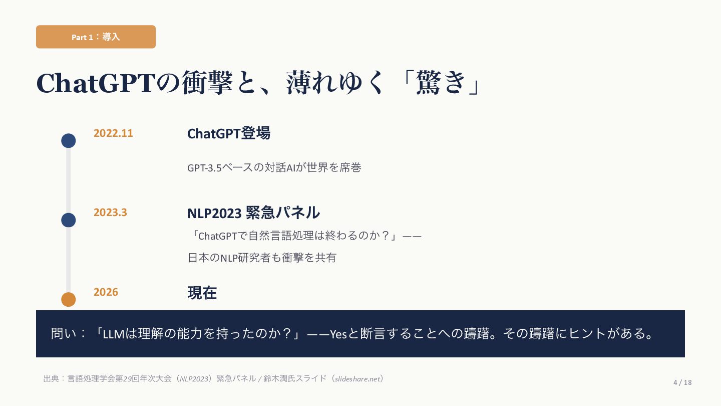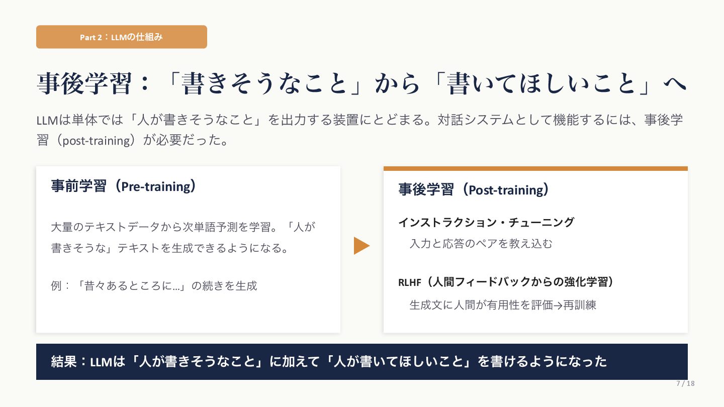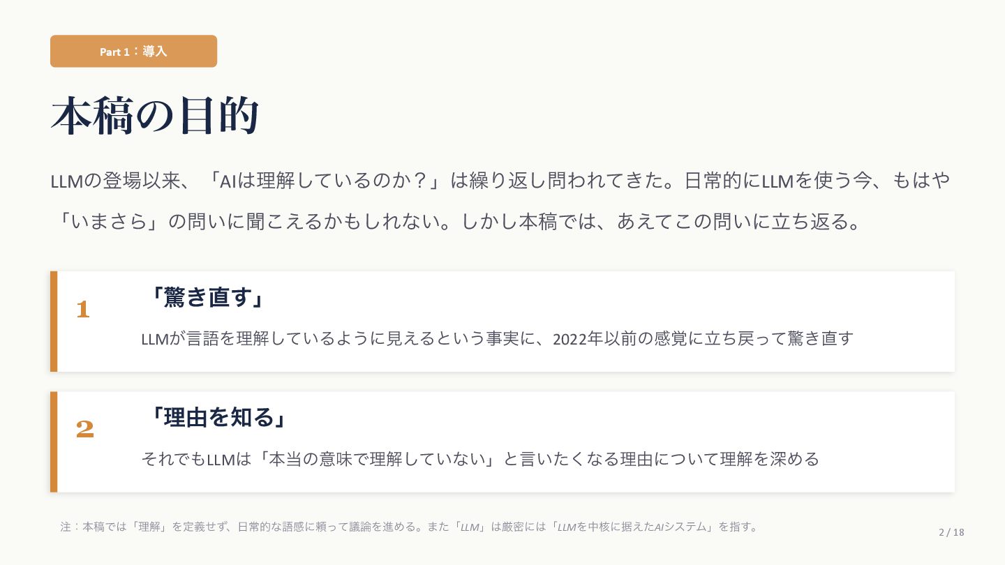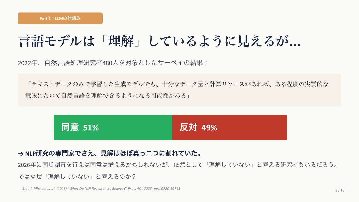 Agüera y ArcasࢯɺAIʹؔ͢Δߟ͑ํ͕2019ࠒʹมΘͬͨͱड़͍ͯ Δɻ ֩৺తͳཧ ① ςΩετ༧ଌAIશʢAI-completeʣͳͰ͋Δ ɹͲΜͳʮʢ͍͠ʣͷ͑ʊʊʯͷϓϩϯϓτܗࣜͰఏࣔͰ͖Δ͔Βɻ ② ڻ͖͘͜ͱʹɺ࣍୯ޠ༧ଌͷ܇࿅Ͱ࣮ࡍʹͦ͏ͨ͠ೳྗ͕ग़ݱͨ͠ ③ LLMຊͷೳͰͳ͍ͱ͍͏ਓ͕͍Δ͕ɺ͜ΕʮᣐͰΨΤϧݱʯ ɹࢲͨͪࣗɺڊେܭࢉʹΑΔ༧ଌϚγϯʢmassively computationally-scaled predictorʣͳͷͩɻ → Agüera y Arcasࢯͷ݁ɿզʑ͢ͰʹAGIʢ൚༻ਓೳʣΛखʹ͍ͯ͠Δɻ ग़యɿAgüera y Arcas (2025) What Is Intelligence? MIT Press / 202510݄౦ژߨԋʢචऀௌߨɿrmaruy.hatenablog.comʣ
