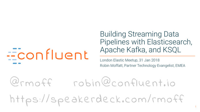 In this talk, we’ll see how easy it is to stream data from sources such as databases into Kafka using the Kafka Connect API. We’ll use KSQL to filter, aggregate and join it to other data, and then stream this from Kafka out into targets such as Elasticsearch, and see how time-based indices can be used. All of this can be accomplished without a single line of code!