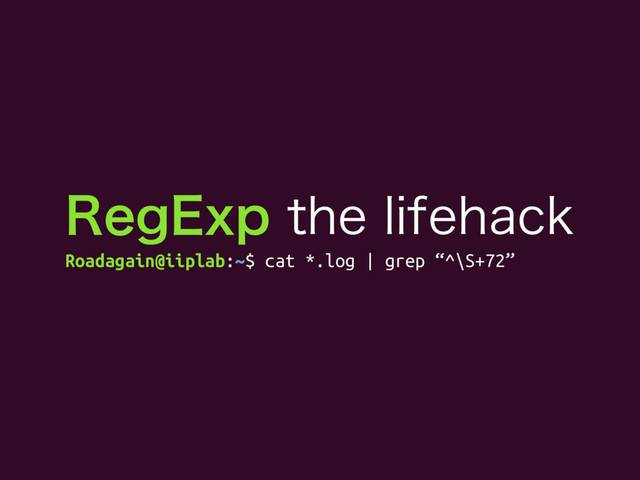 3FH&YQUIFMJGFIBDL Roadagain@iiplab:~$ cat *.log | grep “^\S+72”