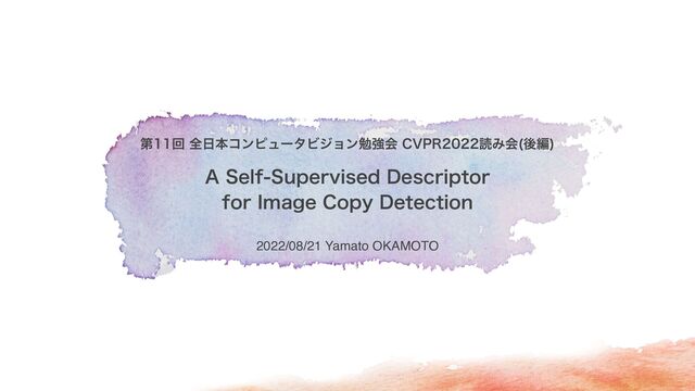 第11回 全日本コンピュータビジョン勉強会 CVPR2022 "A Self-Supervised Descriptor for Image Copy Detection"