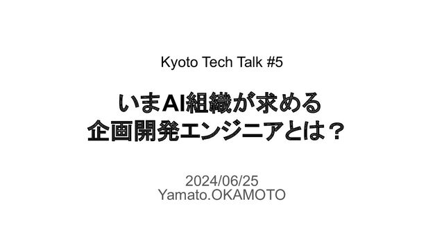 Kyoto Tech Talk #5 いまAI組織が求める 企画開発エンジニアとは? 2024/06/25 Yamato.OKAMOTO