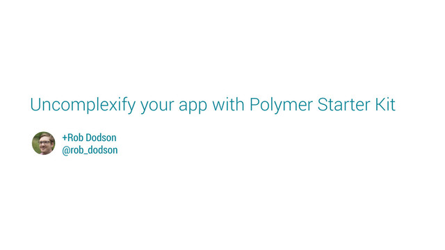 In this day and age, just getting started with a new project is a huge process. What build tools should you use? How will you deal with offline caching? What about storing data and user authentication? On the Polymer team, we've been working on a set of tools and scaffolds to make starting your next project pain free. In this session I'll introduce you to Polymer Starter Kit, and demonstrate how to combine it with amazing services like Firebase, and new standards like Service Worker for offline storage and sync. With these new tools, we're going to remove complexity from your dev environment and get you back on track building your next great idea.