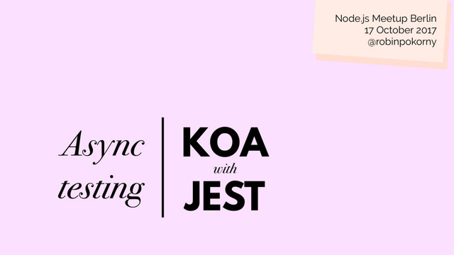 2017 @robinpokorny bit.ly/jest-koa Slides accompany a talk. Here, the talk is missing. I wrote a transcript which can substitute the talk. Find it on this link: INFO