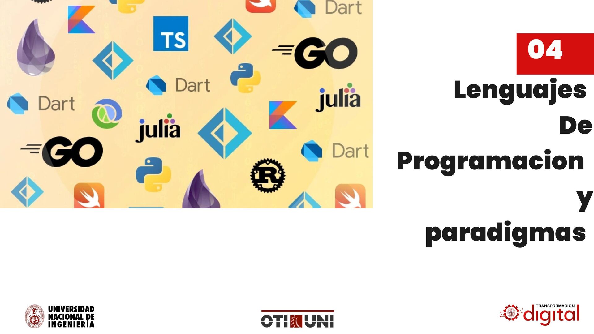por Microsoft, se convirtió en un pilar para aplicaciones Windows y desarrollo de videojuegos con Unity. •Swift (2014): Introducido por Apple, reemplazó a Objective-C como el lenguaje principal para desarrollo en iOS y macOS. •Go (2009): Creado por Google, destacó por su eficiencia en sistemas distribuidos y aplicaciones en la nube. •Rust (2010): Enfocado en seguridad y rendimiento, ganó popularidad en sistemas de bajo nivel y desarrollo de sistemas operativos. Década de 2010-2020: Enfoque en Productividad y Especialización •Kotlin (2011): Adoptado como lenguaje oficial para desarrollo Android, ofreció una alternativa moderna a Java. •TypeScript (2012): Extensión de JavaScript con tipado estático, mejoró la escalabilidad de aplicaciones web. •R (1993, popularizado en 2010s): Dominó el análisis estadístico y la ciencia de datos. •Julia (2012): Diseñado para computación científica y análisis de datos de alto rendimiento. Lenguajes de Programacion
