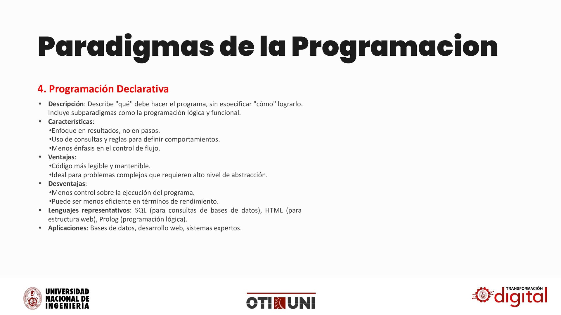 14. Paradigmas de la Programacion • Descripción: Es el paradigma más