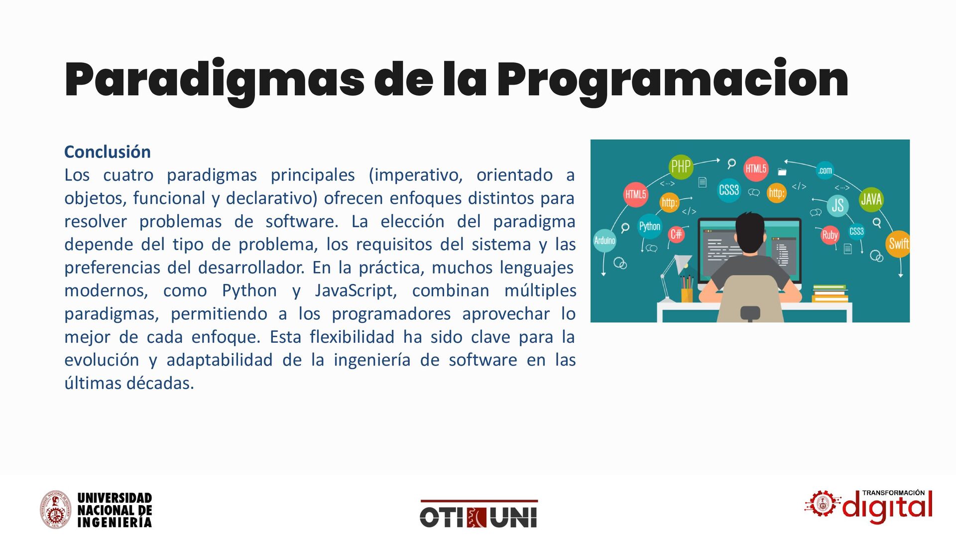 18. Paradigmas de la Programacion Conclusión Los cuatro paradigmas principales (imperativo,