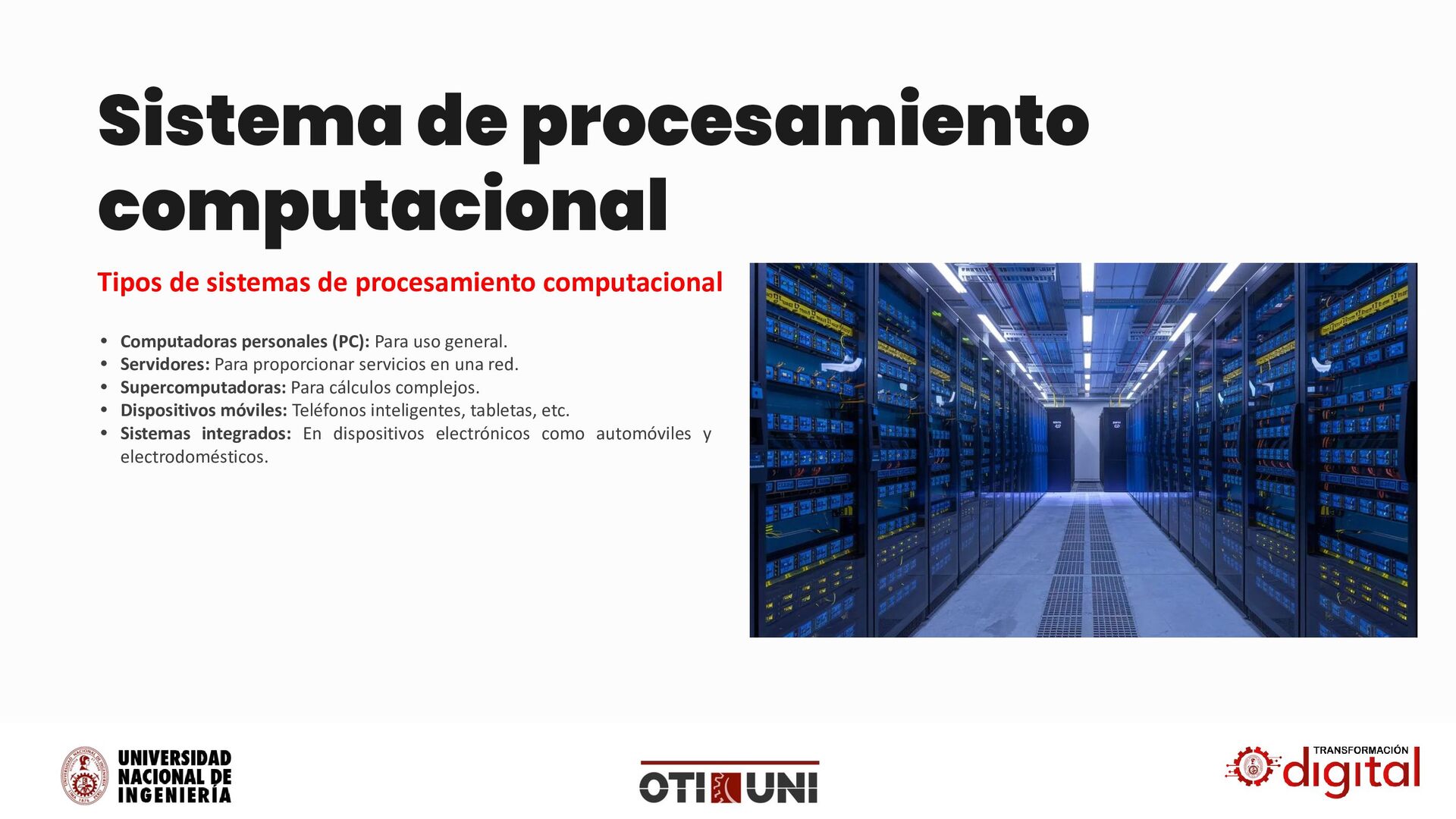 22. Sistema de procesamiento computacional Tipos de sistemas de procesamiento computacional