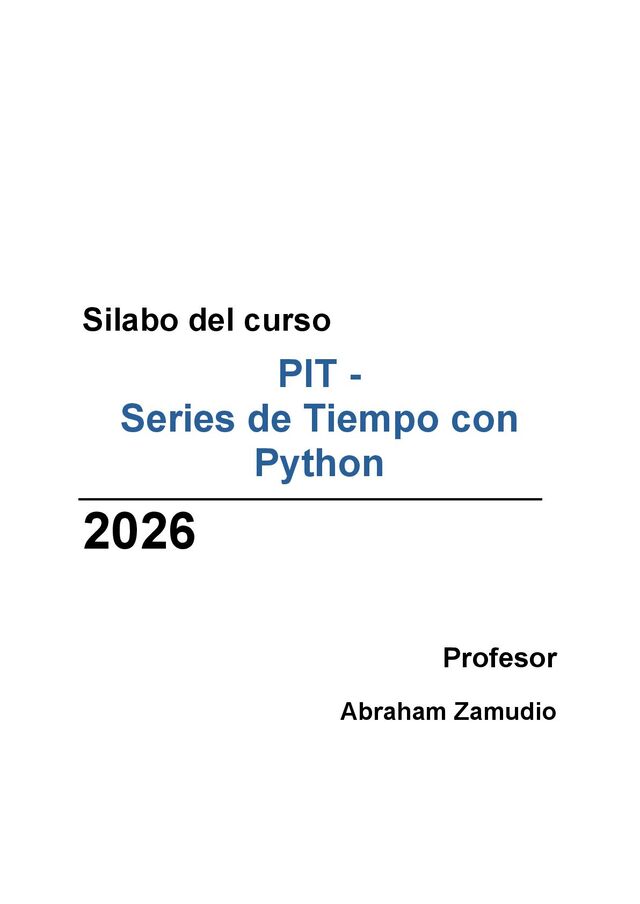 con Python Horas : 18 2. Presentación En la actualidad, el análisis de series de tiempo se ha convertido en una herramienta esencial y altamente demandada en el ámbito del análisis de datos y la ciencia de datos. Estas series, que consisten en conjuntos de observaciones tomadas secuencialmente a lo largo del tiempo, son una fuente invaluable de información en una amplia gama de campos y sectores. Pensemos, por ejemplo, en el ámbito financiero. En esta área, el análisis de series de tiempo es fundamental para la predicción de precios de acciones, bonos, derivados financieros, fondos de inversión, activos de renta fija, activos de renta variable, activos líquidos, activos ilíquidos, activos a corto plazo, activos a largo plazo, etc , lo que permite a los inversores tomar decisiones más informadas y gestionar sus carteras de manera más eficiente. En el comercio electrónico, las series de tiempo son esenciales para pronosticar ventas y optimizar inventarios, lo que puede hacer la diferencia entre el éxito y el fracaso en un mercado altamente competitivo. Además, en el ámbito de la ciencia ambiental, las series de tiempo permiten modelar datos meteorológicos y ayudar a predecir eventos climáticos extremos, lo que es crucial para la planificación de la respuesta ante desastres y la gestión de recursos naturales. En la medicina, el análisis de series de tiempo se ha utilizado para analizar registros temporales de pacientes, detectar patrones y anomalías, y mejorar la calidad de los cuidados médicos. En este curso, no solo aprenderemos los conceptos teóricos subyacentes a las series de tiempo, sino que también adquiriremos las habilidades prácticas necesarias para aplicar estos conocimientos en situaciones reales. Utilizaremos Python, uno de los lenguajes de programación más versátiles y ampliamente utilizados en el análisis de datos, y haremos uso de poderosas bibliotecas como pandas para la manipulación de datos, NumPy para operaciones numéricas y matemáticas, y matplotlib y seaborn para la visualización de datos. A lo largo de este curso, exploraremos y explicaremos cómo las series de tiempo pueden ser manipuladas, visualizadas y modeladas para extraer información valiosa. Veremos cómo los modelos estadísticos clásicos, como los modelos autorregresivos (AR), de medias móviles (MA) y ARIMA, pueden ayudarnos a comprender y predecir comportamientos a lo largo del tiempo. También abordaremos modelos más avanzados como SARIMA, que incluyen componentes estacionales, y aprenderemos a aplicarlos en diversos contextos. Este curso lo he diseñado para ser una plataforma de aprendizaje integral, donde no solo teorizaremos sino que también pondremos en práctica nuestros conocimientos a través de proyectos prácticos con datos reales. Analizaremos series de tiempo financieras, haremos predicciones de ventas y estudiaremos datos meteorológicos. Estas aplicaciones reales no solo harán que el aprendizaje sea más entretenido y significativo, sino que también te prepararán para enfrentar desafíos similares en tu carrera profesional. Abraham Zamudio