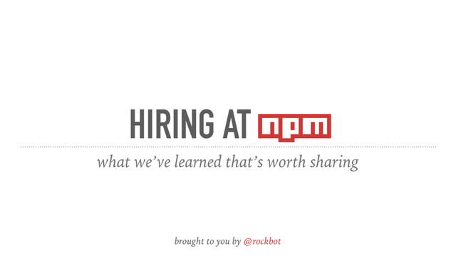 HIRING AT npm what we’ve learned that’s worth sharing brought