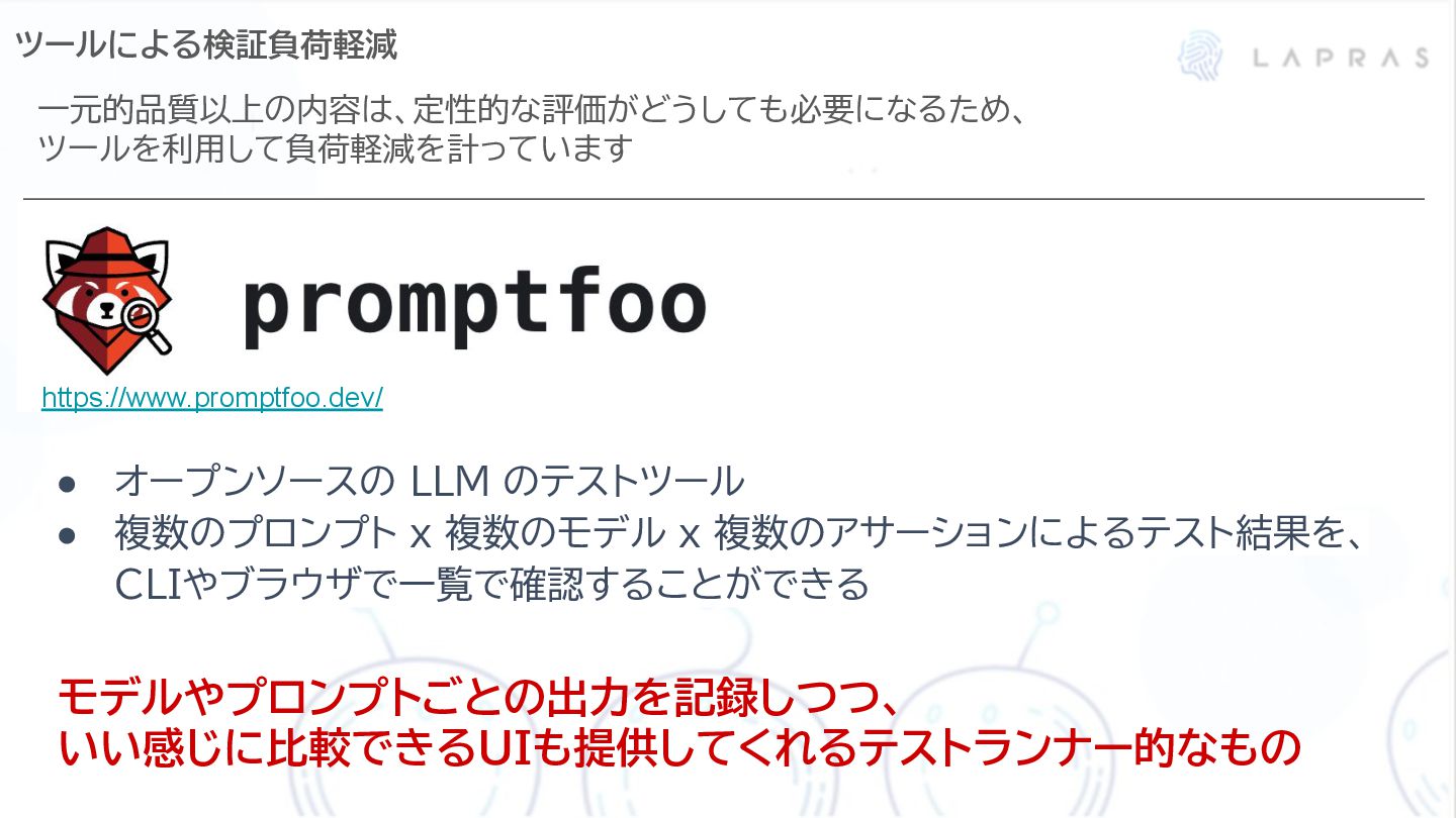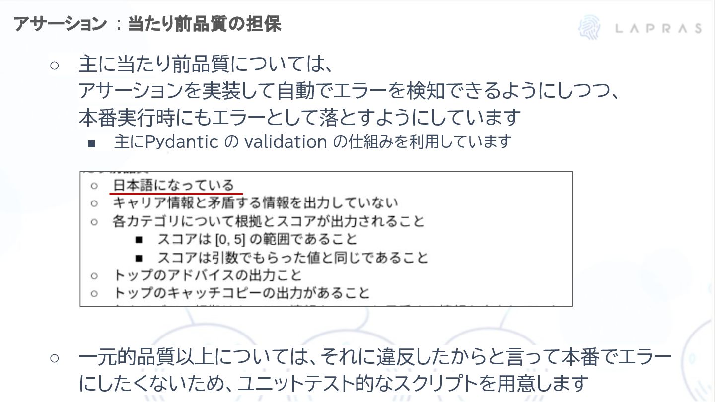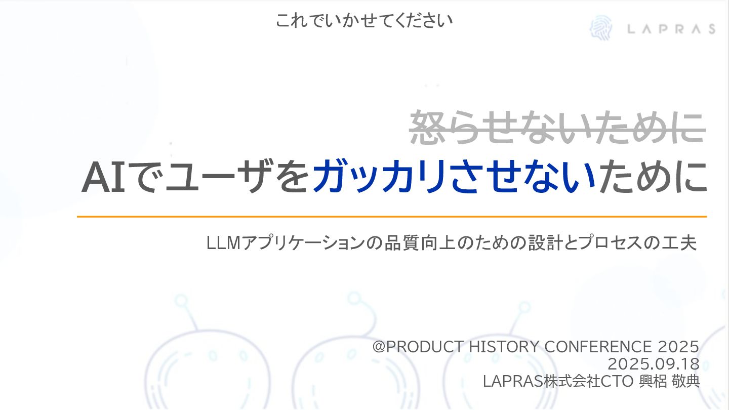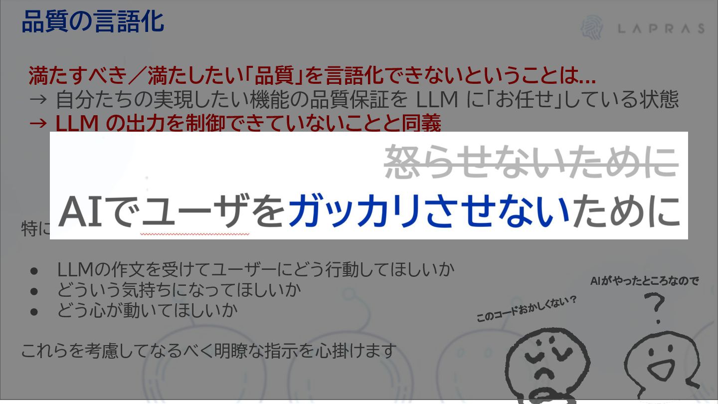 LAPRASにおけるLLMプロダクトの品質周りについての取り組みについてお話させていただきました。