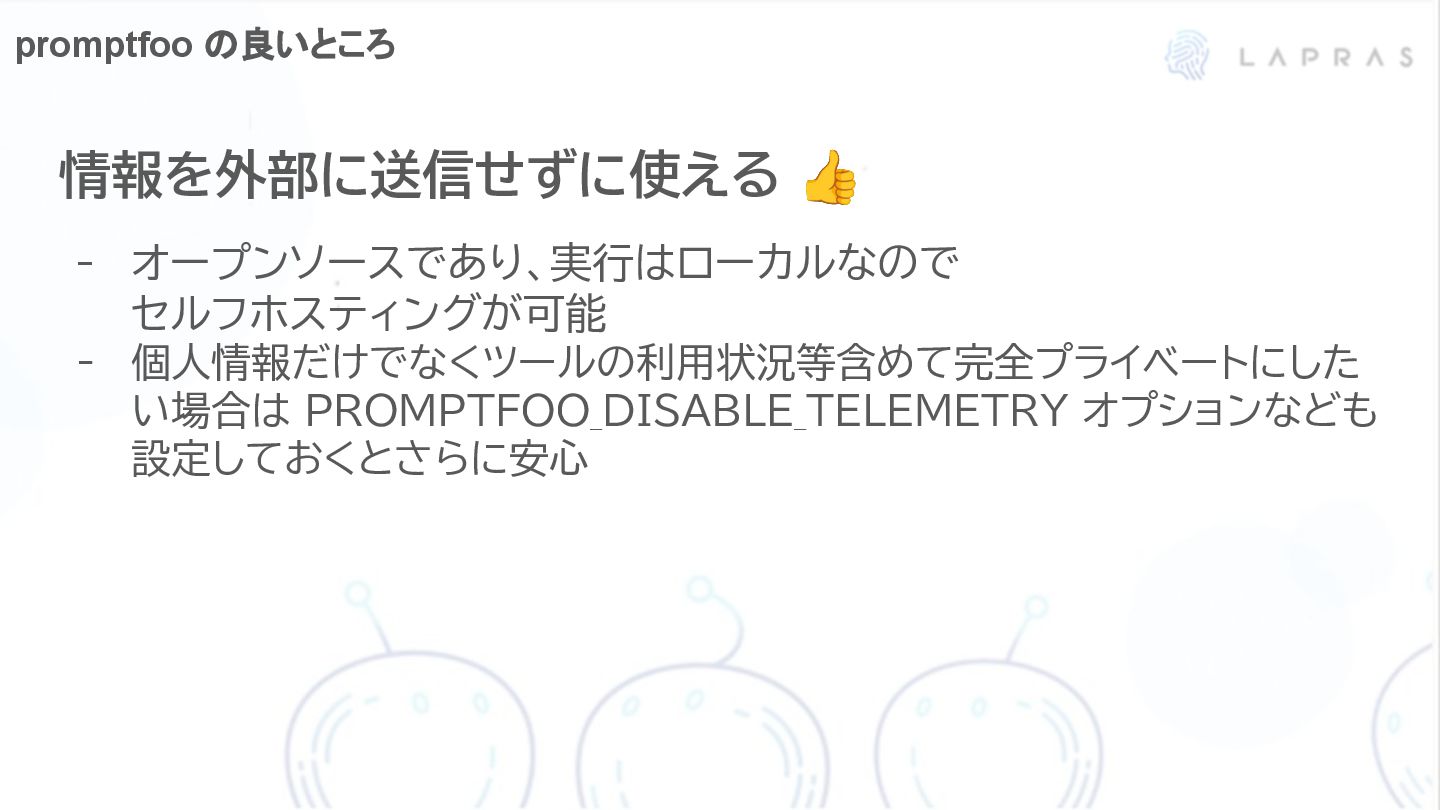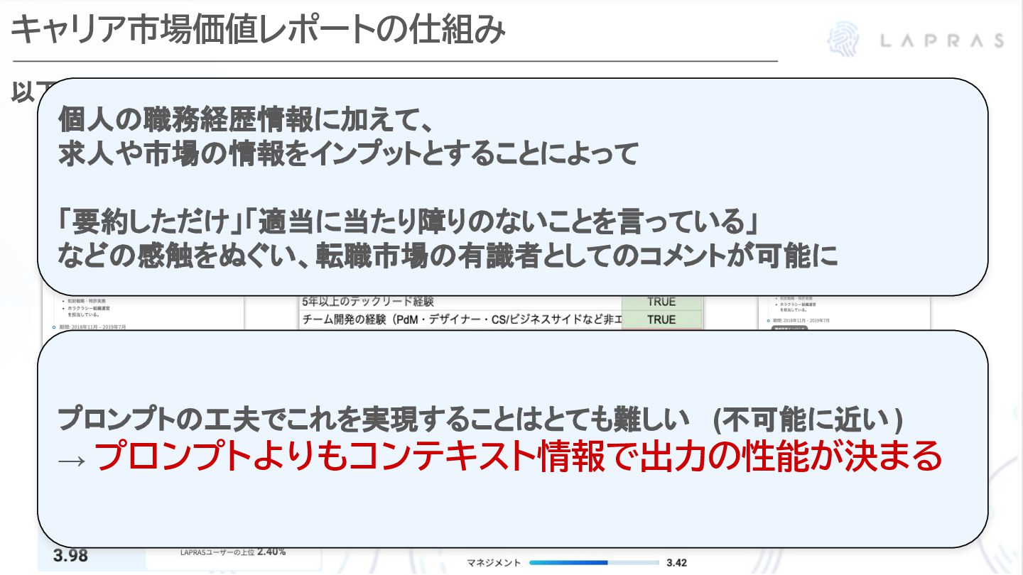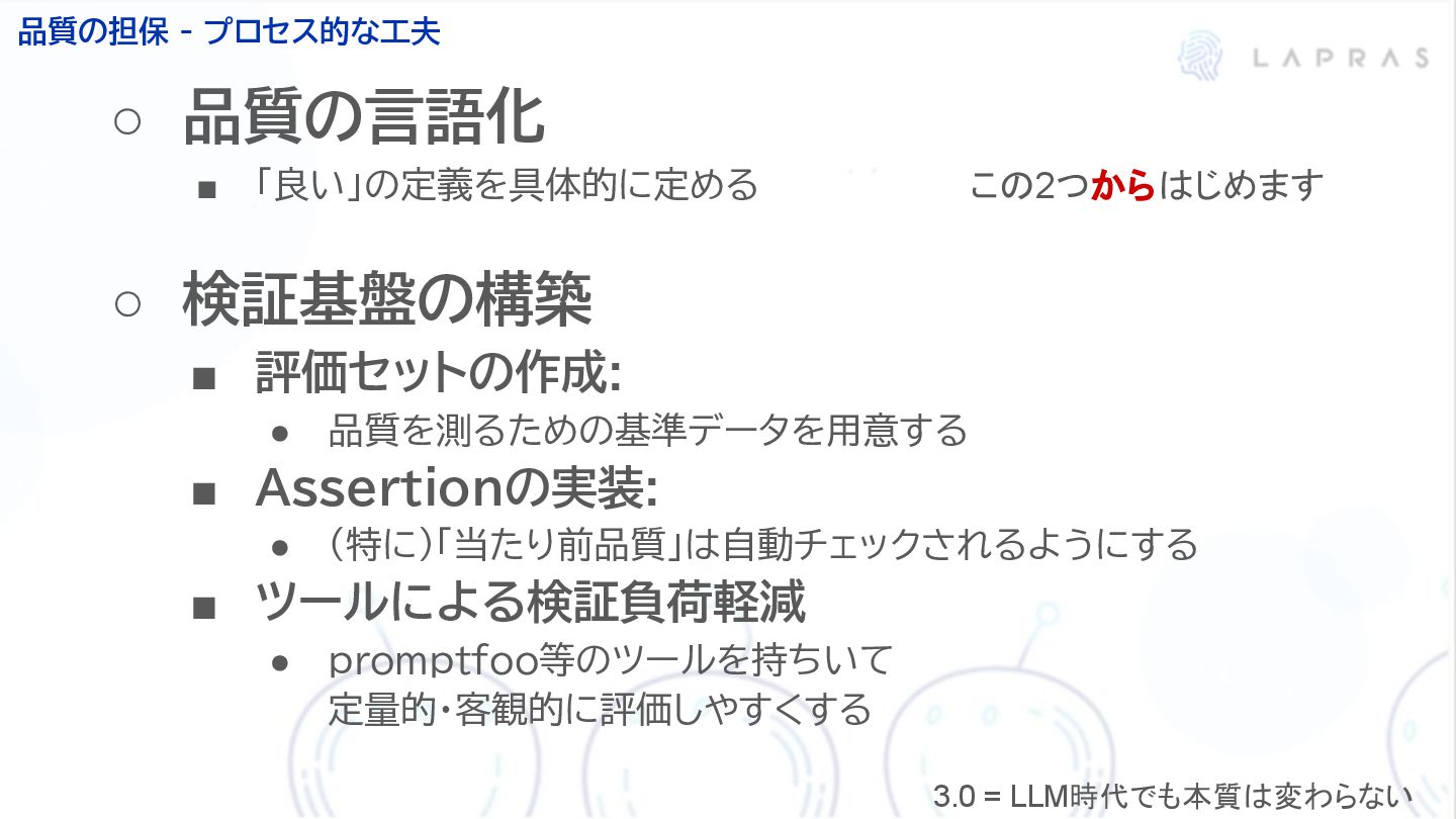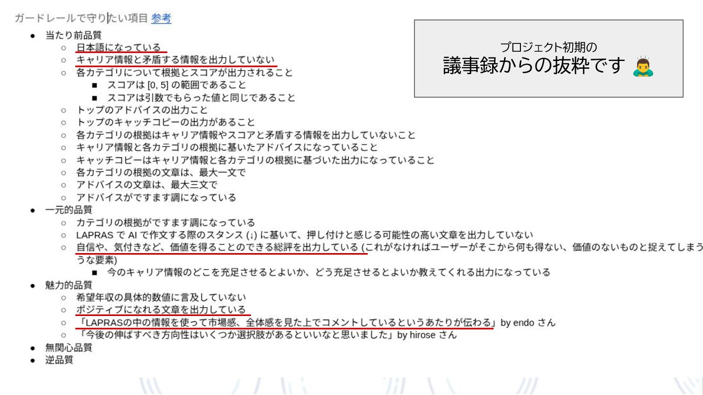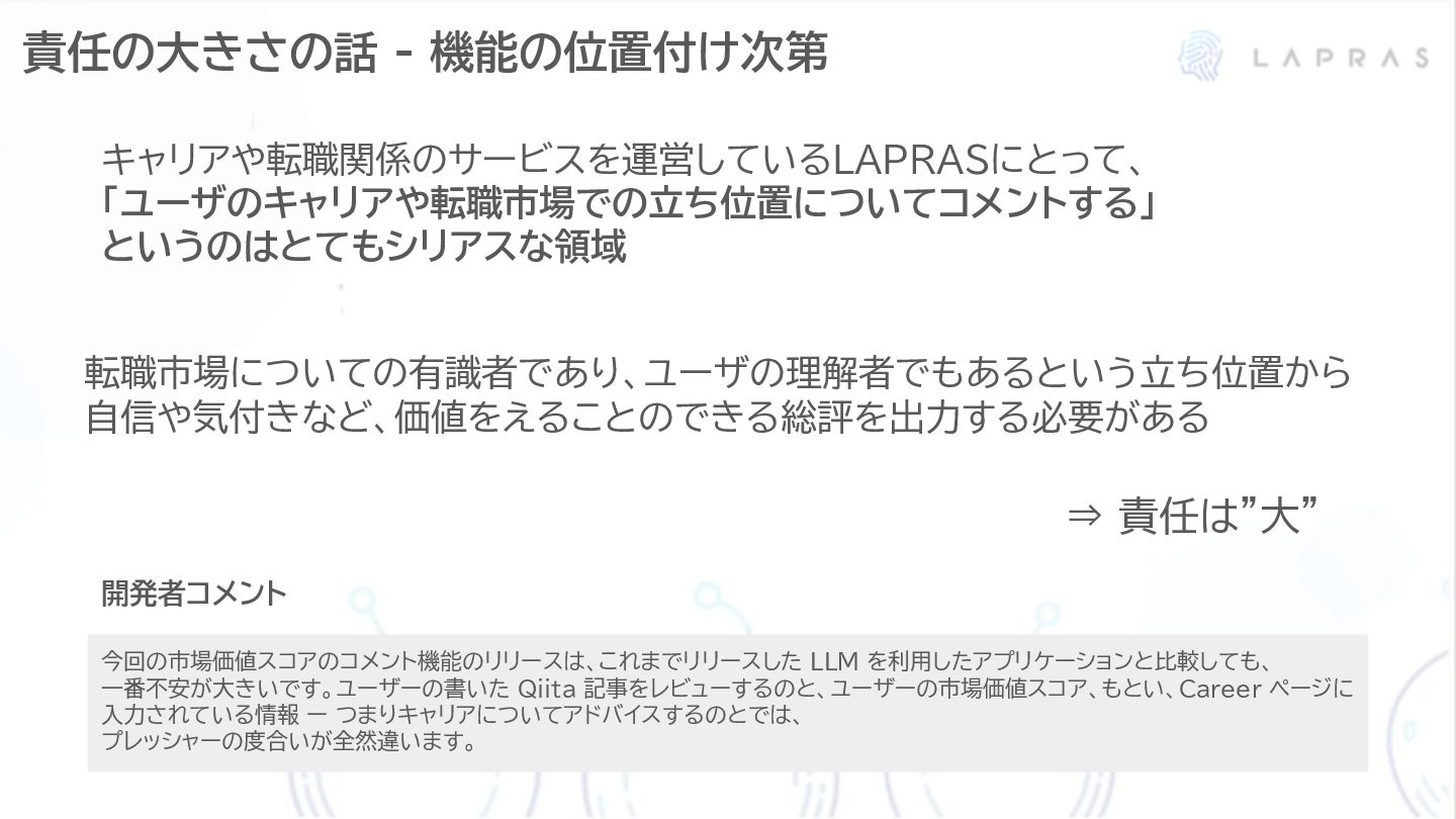 LAPRASにおけるLLMプロダクトの品質周りについての取り組みについてお話させていただきました。