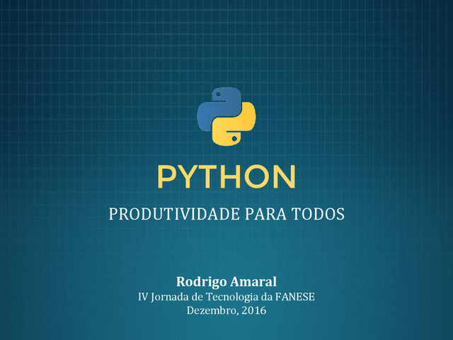 Visão geral das características de Python que a tornam uma das linguagens mais versáteis existentes. Palestra apresentada na IV Jornada de Tecnologia da FANESE, em 7 de dezembro de 2016.
