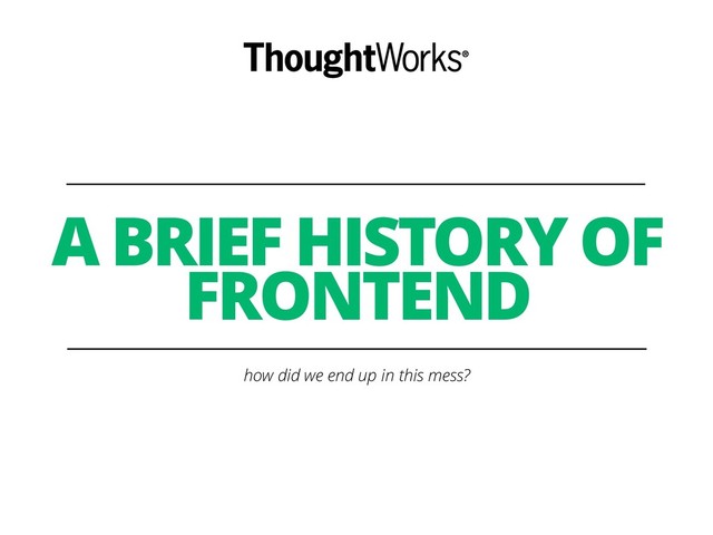 truth, the requests usually just read/write the database and finishes •On the frontend, one request (page), might be open for a long period of time, with many interactions and small state changing (popups open or closed, forms, buttons states) •On Backbone.js for example, it was said that the models were your single source of truth, but each model had its own state, synced via events. If you have multiple single source of truth, you have none •Models held state, Directives held state, DOM held state, the state was all over, making very hard to maintain •With two-way data binding you have to reconcile the DOM with the data on JavaScript, causing performance issues •Hidden/global events firing are very hard to follow WHY STATE IS THE PROBLEM 16