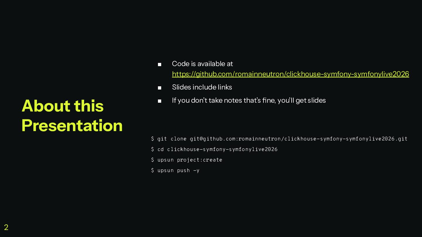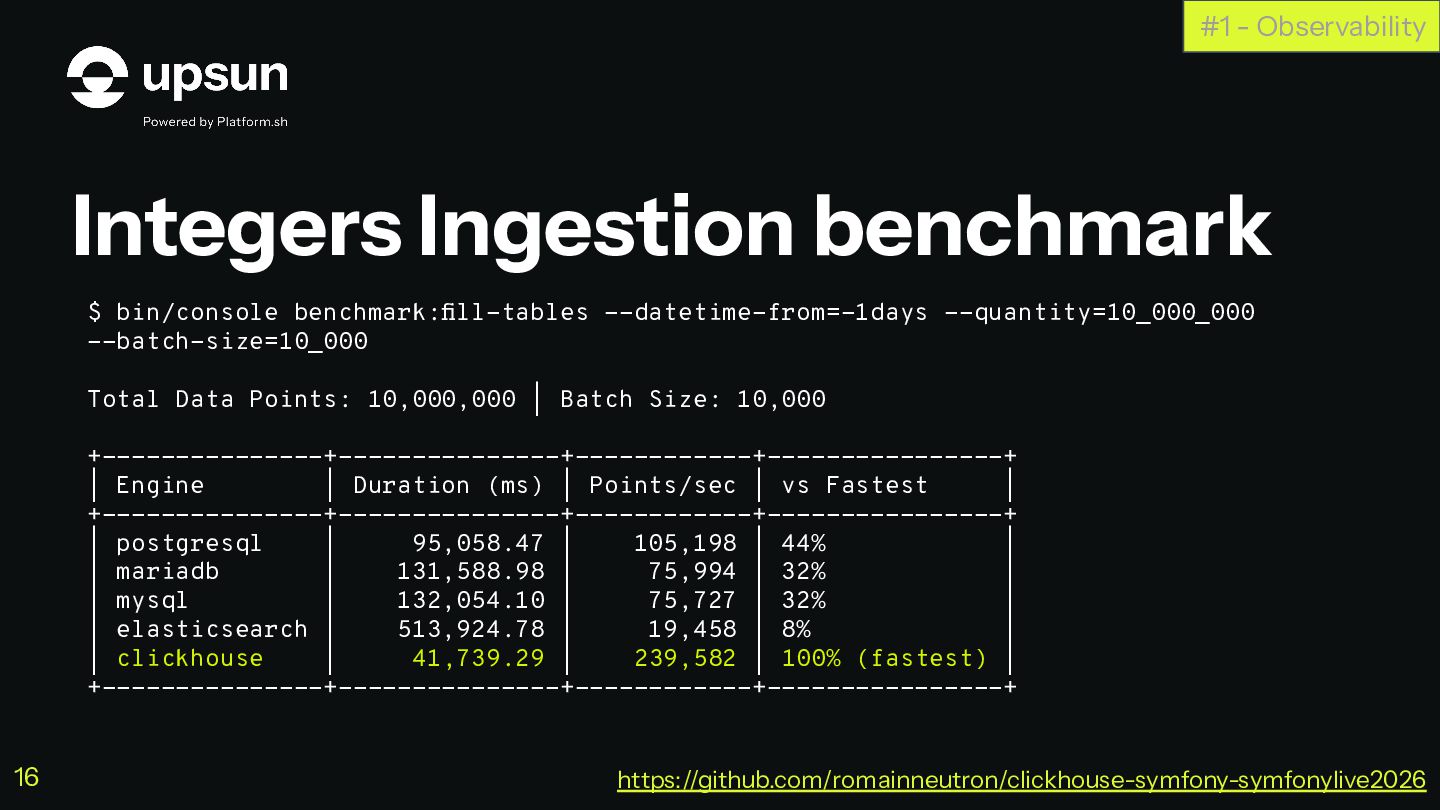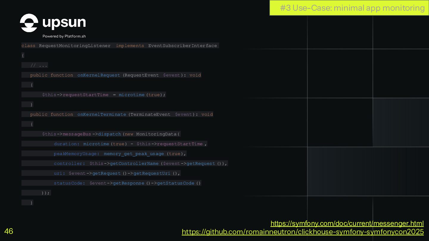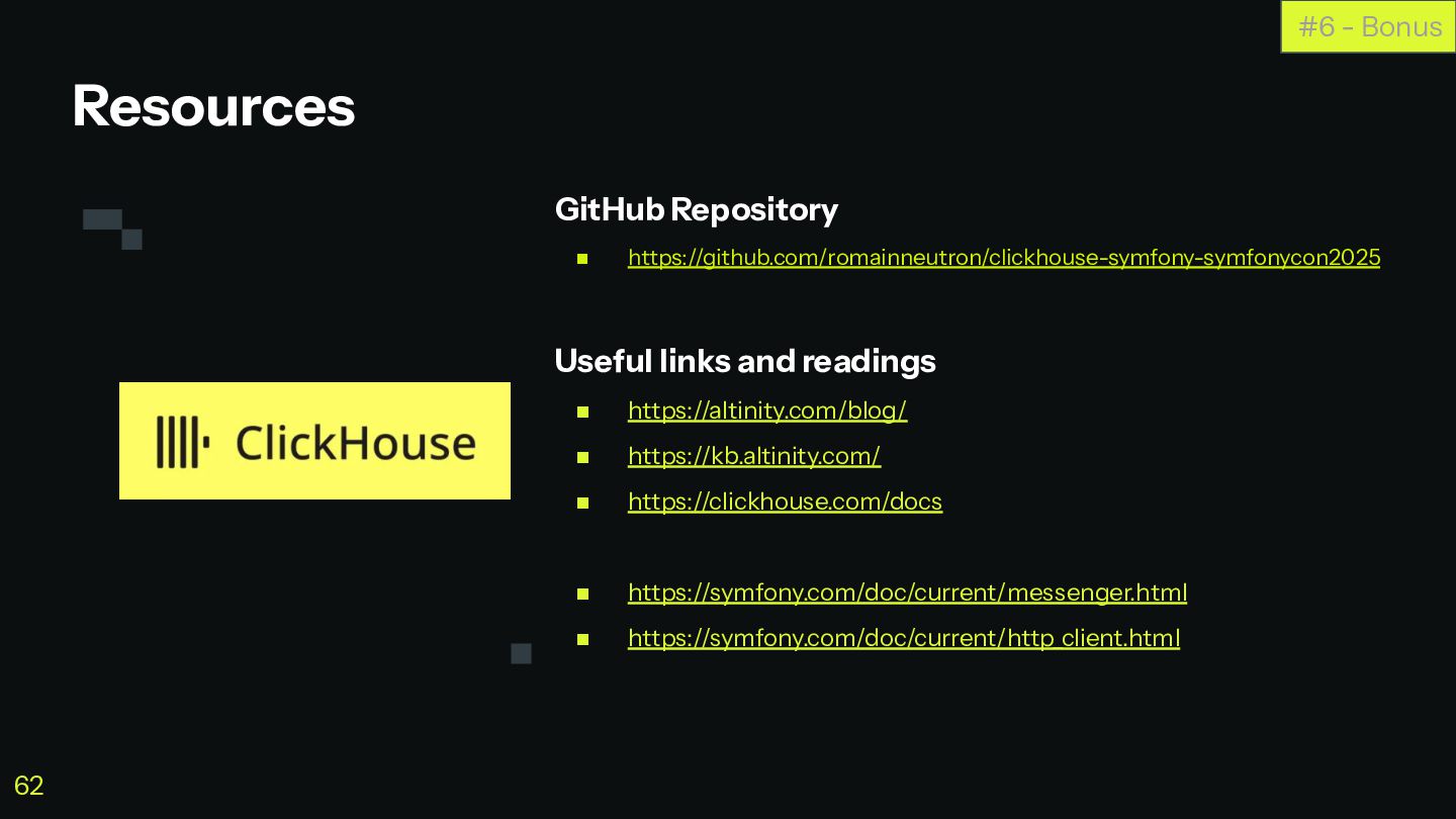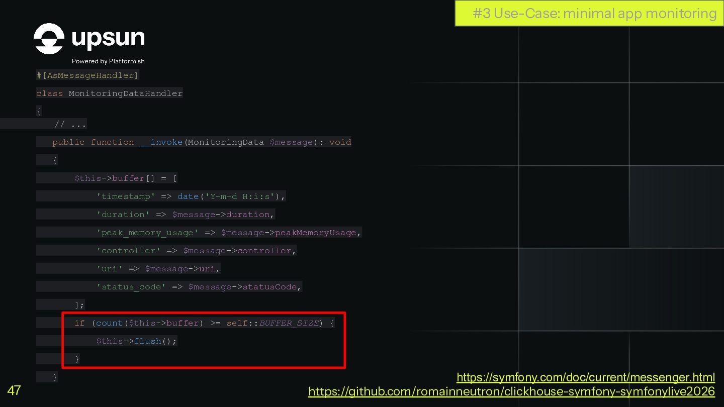 C'est à ce moment que ClickHouse vous sauve. C'est une base de données orientée colonnes super-puissante qui va vous simplifier la vie pour agréger des données en temps réel, tout en restant dans votre stack Symfony habituelle.