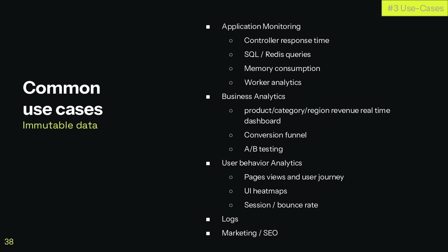 Pour autant, pour de l'analytique, des logs ou des métriques, lorsqu'on a besoin de performance temps-réel à grande échelle ou gros volume, on peut atteindre facilement leurs limites.