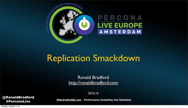 1. EffectiveMySQL.com - Performance, Scalability, Site Reliability @RonaldBradford #PerconaLive Agenda Replication