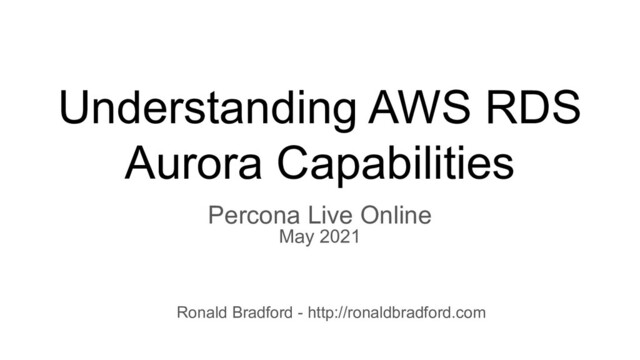 This presentation is not going to go into the technical details of RDS Aurora's underlying infrastructure or a feature by feature comparison of AWS RDS to AWS RDS Aurora.