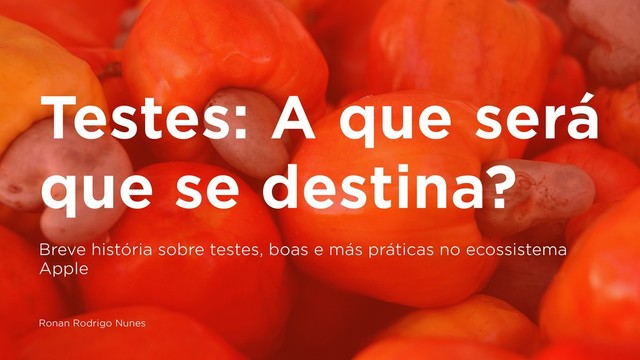 Uma talk baseada em exemplos reais de implementações de testes, a partir de experências práticas e conceitos teóricos. Os objetivos são: encorajar a implementação da cultura de testes; Para aqueles que já o fazem, aprimorar a qualidade de testes implantados; E que o conteúdo apresentado seja orientador para os que se interessem pelo tema.