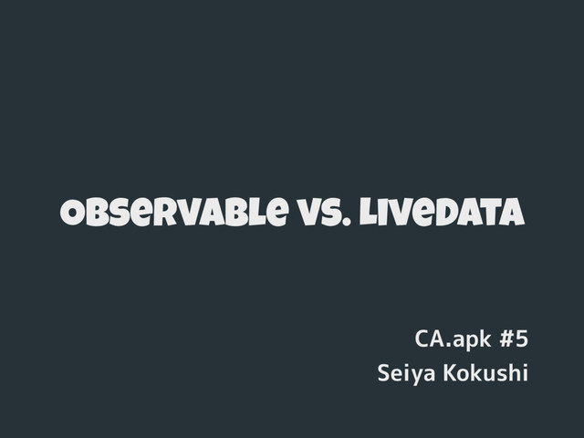 : ViewModel() { val title: MutableLiveData<String> = MutableLiveData() val imageUrl: MutableLiveData<String> = MutableLiveData() … init { randomUseCase.observe() .subscribeOn(Schedulers.io()) .subscribe({ randomData -> title.postValue(randomData.data.title) imageUrl.postValue(randomData.data.images.downsizedMedium.url) }) .let { compositeDisposable.add(it) } fetchRandomData() } … } 監視したいオブジェクトを